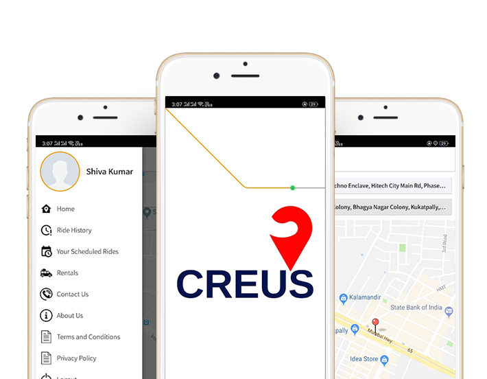 Creus is a ride-booking app (just like uber). Native app developed in IOS Swift and Android, Users would be able to find and book the available Cabs based on Geo location.